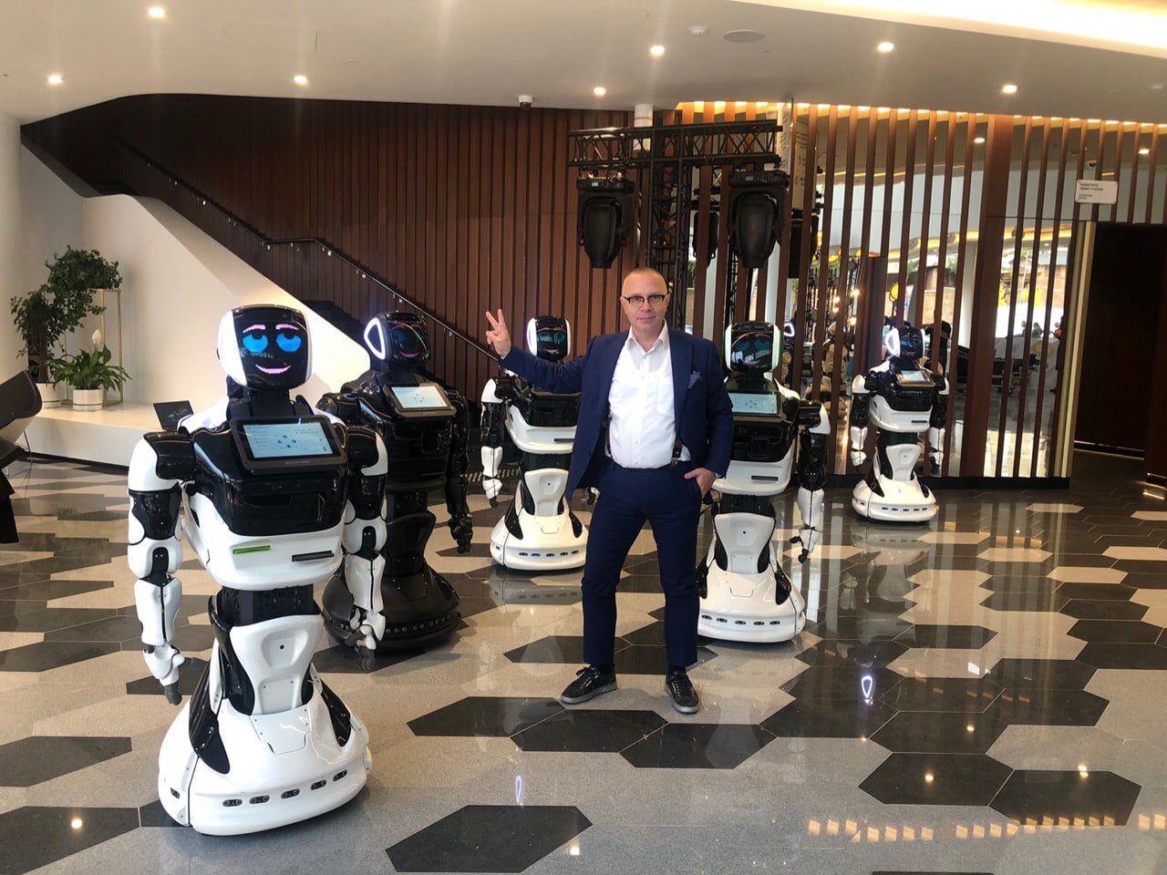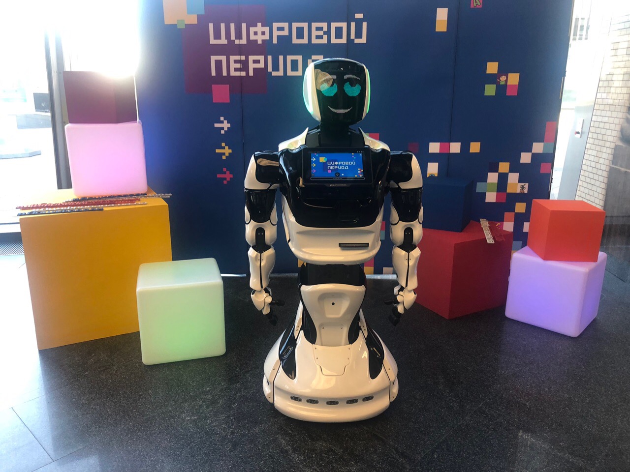 Уникальный робот Pepper. Привлекает своим внешним видом. Двигается совсем как живой. Плавные движения и широкие возможности интерактива.