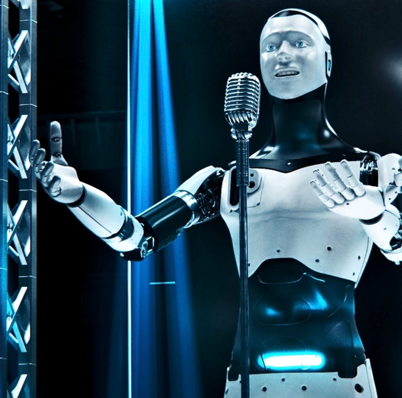 Робот нового поколения может выражать эмоции жестикулируя, играть, петь и взаимодействовать с собеседником, показывает выражения лица и жесты человека.